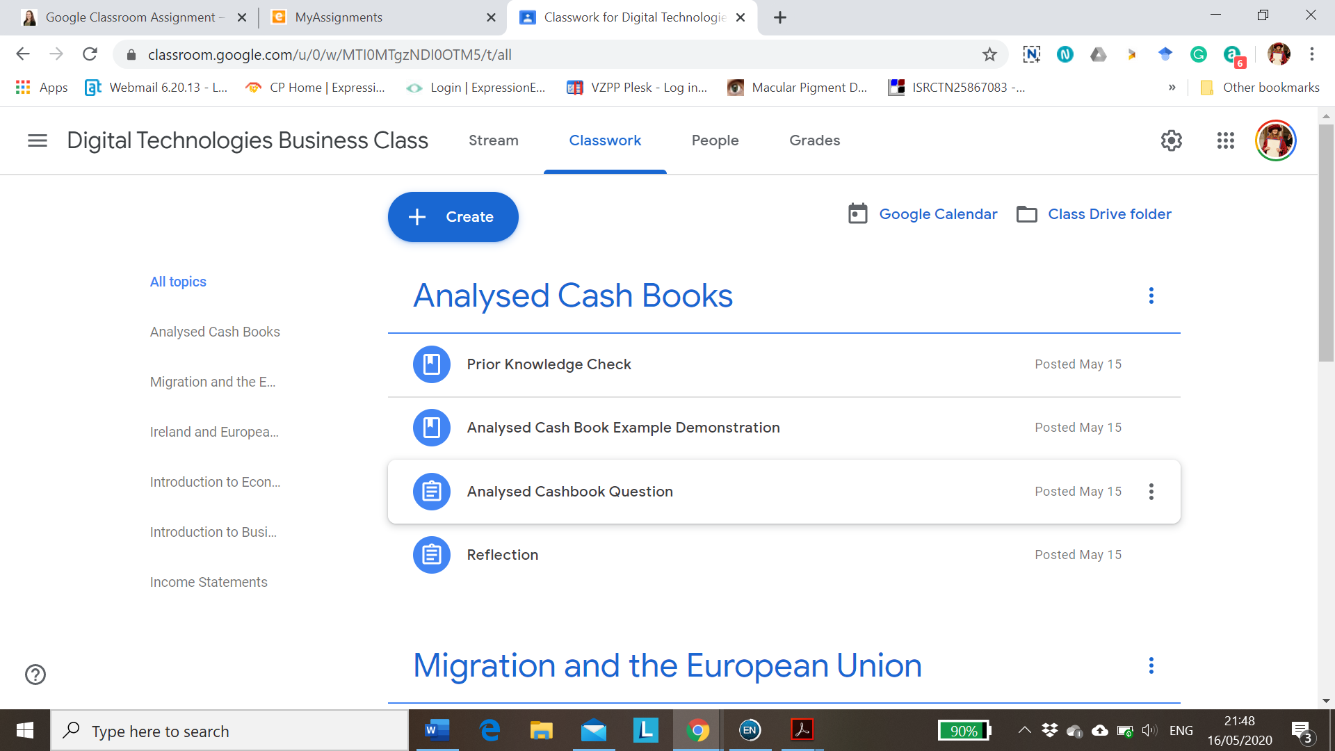Google Classroom, to me, is the most beneficial tool for online learning. I may be a little biased as I would have used this tool during my SEEPP 1 placement. There are many functions of Google Classroom which make its utilisation a valuable tool for teachers. Google Classroom allows you to create topics within the class, to which you can then assign work relating to each topic. For my assignment, I created a topic for Analysed Cash Books and within that topic, I created four different sets of material for the students. The interesting thing about Google Classroom is that it allows you to create Google Forms (where I created my Reflection and Prior Knowledge material). These forms can be created quite easily and allow the capture of important information in real-time. The student fills out the forms whilst in google classroom which means you do not lose them to another website or document. Learning and engagement are made easier for the student.